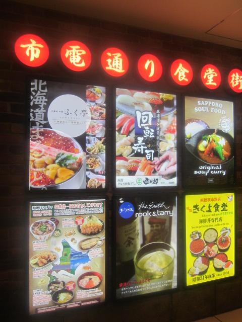 新千歳空港内でレトロな風情を味わえる場所として、鉄道マニア的には特にネーミングが気になったので足を運んでみました。実際に市電のヘッド部分が展示されていて、運転台とミニ客席部分には入ることも出来て、”アミューズメントパーク”としては訪問して楽しいところだと思います。ただ、市電通り食堂街、という、何となく庶民向けの食堂街なのかな、という印象とは全く裏腹に、この市電オブジェを囲むお店のメニューは高いものばかりで、完全に富裕層向けの食堂街だと思います。