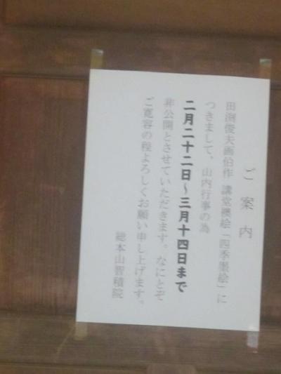 智積院の境内の一番南東寄りに位置している建物ですが、すぐ隣に金堂があって、この建物の存在意義がイマイチ薄いように感じたのですが、元々は別の寺(大雲院)の本堂だった建物が、智積院本堂の焼失の際に譲渡されたものとのことで、その由緒には流石京都だなという懐の深さを感じることが出来ました。このお堂の前あたりの紅白梅の木々もとても美しいので、春先に訪問された方は、併せてその風情を楽しんでいかれることをお勧め致します。