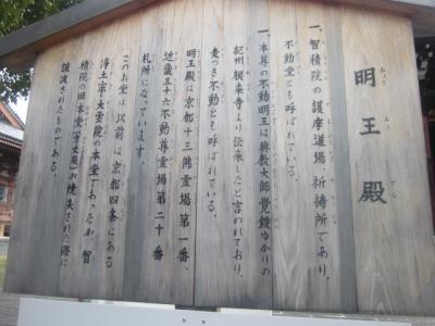 智積院のメインの見所の一つはこの講堂で、回廊上の通路に沿って外周を歩けるようになっています。ここから有名な庭園も眺めることが出来ますが、庭園も見る角度によって風情も異なりますので、やはり億劫がらずにゆっくりと歩いて周回しておくと良い建物だと思います。因みに普段は襖絵も有名なのですが、私の訪問時は何かのイベントで”出張中”だったようで、それが見られなかったのは少々残念でした。