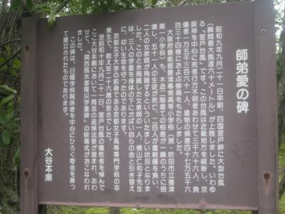 今回は祖父の法事目的で大谷本廟を訪問しました。個人的にはこの数日前に四国・高知の室戸エリアを旅していたのですが、今回、正面の石段脇に小さな碑を見つけて、これを読んでみてびっくり、何と、この碑は室戸台風の際の犠牲者を悼む碑だったんですね。何度も訪れている場所でも知らないことは色々と発見できるものですね。