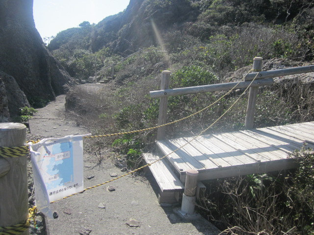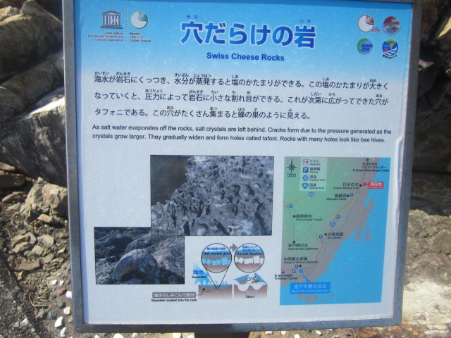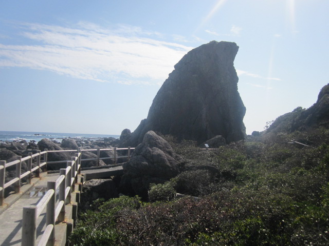 室戸岬エリアに色々とみられる奇岩群を巡る感じで海沿いに続く遊歩道で、きちんとした路で整備されていますので、なかなか歩きやすく、風光明媚な景観を車の影を感じずに楽しめるのが歩行者には有難い遊歩道だといえます。私は実は今回の旅において、悪天候時と晴天時の二度、室戸岬界隈に足を運ぶ機会に恵まれましたが、やはり快適さは全然違っていて、特に私は二月の訪問でしたが、晴れていると汗ばむほどの陽気である一方で、雨だとかなり肌寒く、風も強くて大変でした。やはりこの道を歩く際には、天気は最重要事項だといえるでしょう。
