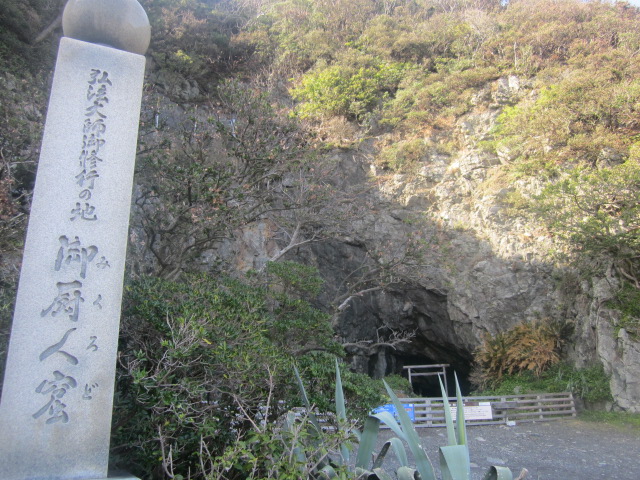 室戸岬周辺には、色々な見所が点在していますが、その中でも必見スポットの一つといえるのがこちらだと思います。ここは若き日の弘法大師が修行を積んだ場所として伝えられているため、四国八十八か所巡りのお遍路さん達も、札所とは別次元の巡礼場所として訪問されるのが通例で、私の訪問時も、お遍路服に身を包んで、この窟の前で読経されている方の姿を見かけました。