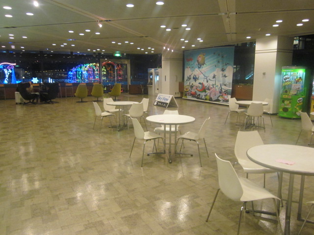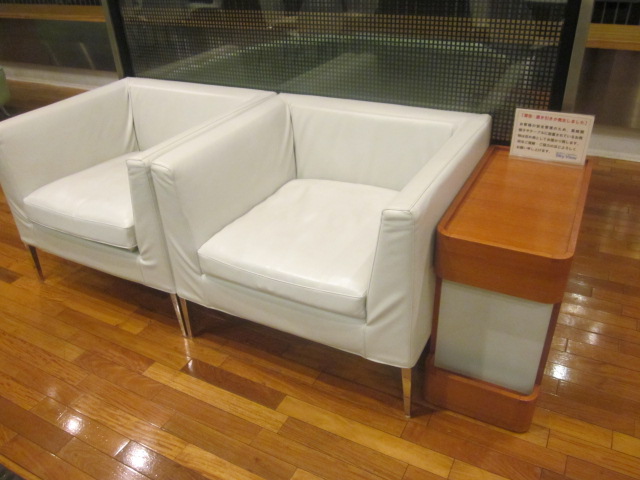 ここは関空の中でも個人的には最も気に入っていて、継続的に訪れて定点観測(?)しているスポットなのですが、今回気付いたのは、4階のカフェがあるフロアの座席配列が変更になっていたことでしょうか。以前はパーティションで仕切られた奥のブースは、柔らかいソファーが並ぶ感じで、座り心地良く長居できたのですが、このソファーが、人目に付く側に配置されるようになり、従来のブースには、硬いイスとテーブルが並ぶレイアウトになっていました。