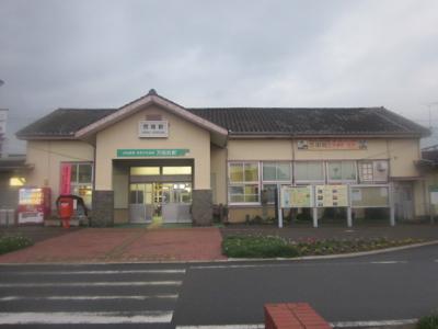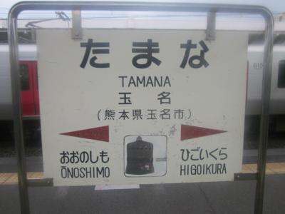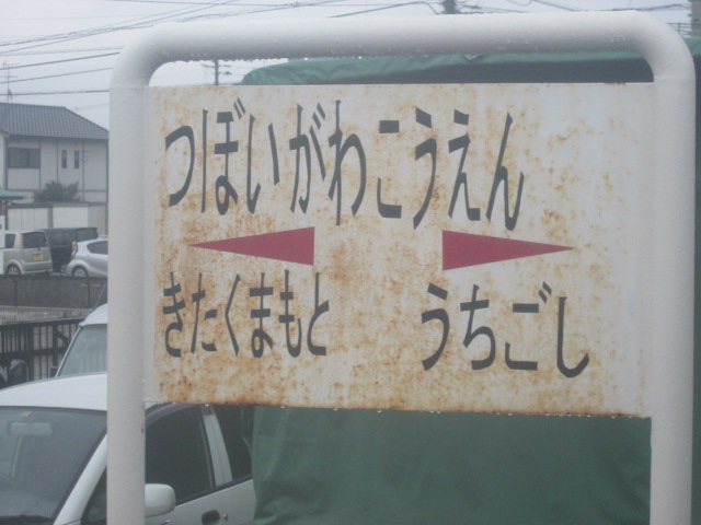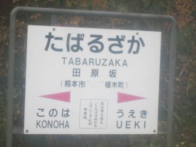 熊本市域の北部、西南戦争の舞台の一つとして歴史的にも有名な田原坂ですが、その最寄にあるのがこちらの駅です。駅名標の真ん中に何やら書かれているなと凝視してみると、あの有名な一節が、限られたスペースの中で巧みに綴られていました。