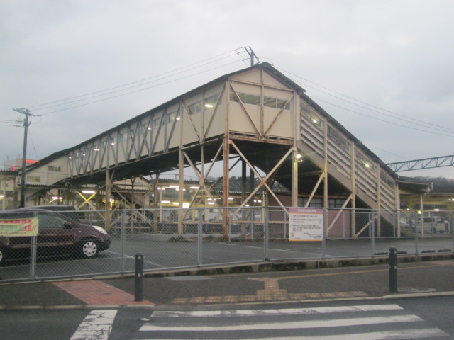 世界遺産に指定されたばかりの万田坑の入口駅としても、俄かに脚光を浴びつつある荒尾駅ですが、ここはまず、駅としては立派な跨線橋に目を奪われました。何やら「ロング・ロング・ブリッジ」という愛称も付されているようで、確かに結構な長さを誇る跨線橋で、木造らしき佇まいもなかなかステキに感じられました。
