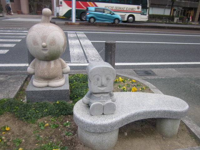 高知駅からはりまや橋にかけてのエリアは、高知観光にいらした方なら誰もが歩かれる王道ルートかなと思いますが、その歩道沿いで行き交う人々の目を楽しませてくれているのがアンパンマン達ですね。流石に、高知は故やなせたかし氏のお膝元ということもあって、アンパンマン・バイキンマンのみならず、ドキンちゃんや食パンマンなどの像もあって、ベンチとして休憩も出来ますので、高知観光の話のタネに、是非立ち寄ってみて下さい。