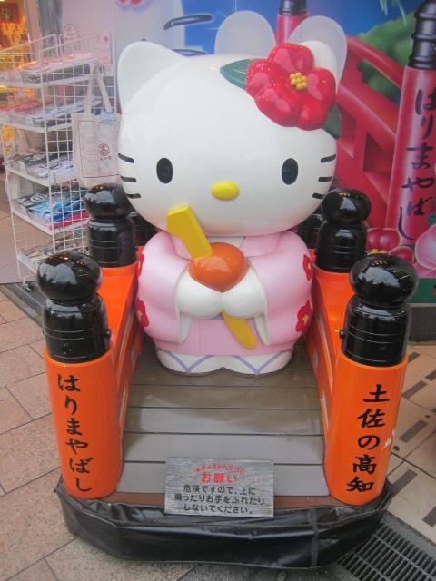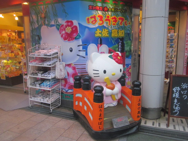 高知のお土産物屋さんといえば、昔からはりま家が第一に挙げられていたかと思いますが、そんなはりま家さんの支店が今ではいくつかあるようで、この京町アーケード入口にある店舗もその一つです。本店程大きくはないですが、ここは何より、入口のはりまや橋キティちゃんが目立っていて、写真を撮る若い方の姿を多く見かけました。店内の仕様も若者向けテイストが強くて、それがすぐ近くにある本店との仕様の違いかなと思われる感じでした。店内の通路が狭いので、雨の日等はちょっと配慮が必要に感じる店舗かなと思います。