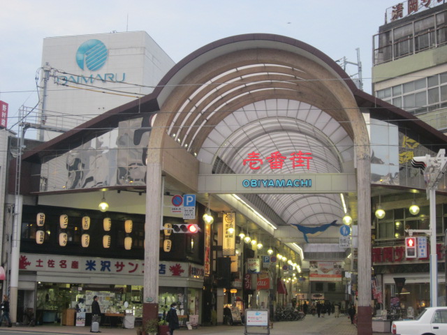 高知位の規模の町としては、この町ではアーケードが発達しているように感じますが、それはやはり雨が多いことに依ると思います。はりまや橋界隈に幾つかのアーケード街が続く立地の中で、アーケードの規模として一番大きいのはやはり帯屋町で、特に東側の壱番街を含めて、西側の二丁目に至るこのアーケードは、通しで一度歩いておくと良いかなと思います。一番賑やかなのはこの一丁目エリアのように感じますが、夜は案外早く訪れる雰囲気。やっぱり高知の人は皆、本当の夜は飲みに行ってしまうきね~( ´∀` )。