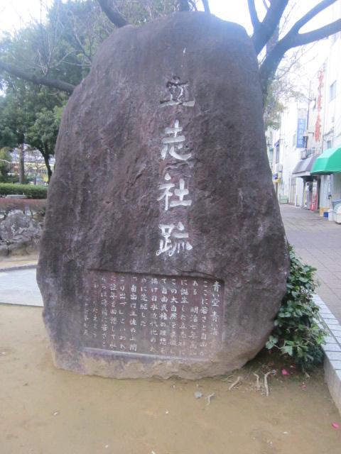 中央公園の脇にひっそりと佇んでいるのがこちらの碑で、勿論、立志社というのは日本の近代史を踏まえる上で、重要な組織であることは周知の通りですが、観光客的視点からすると、この碑は二つに分かれている、というのが注目点だと言えます。
