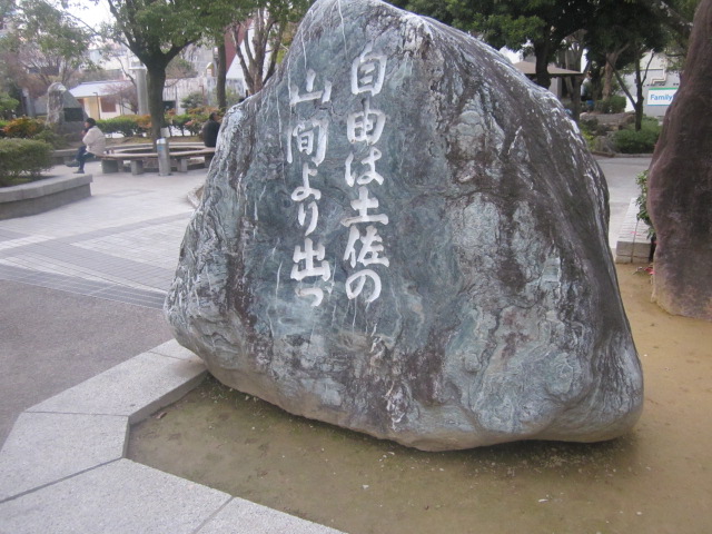 勿論、メインは立志社跡を示す石碑ですが、その隣には、後に設置されたと思しき、”自由は土佐の山間から出づ”と刻まれた石碑もあって、このセットでより立志社としての凄みが感じられるのが良いなと思いました。