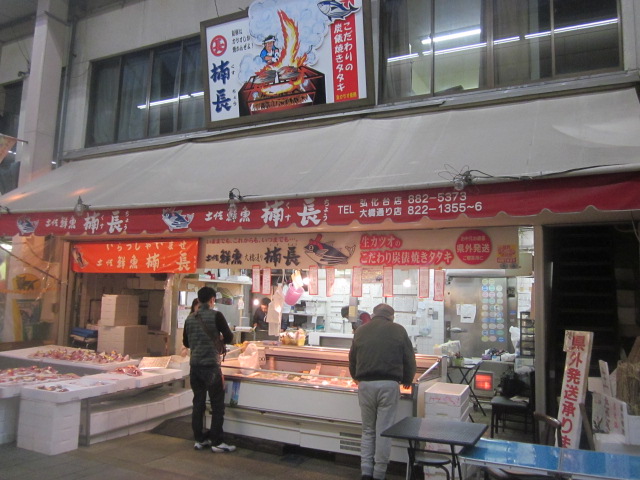 このアーケードに関しては、鮮魚店が一番目立っていて、私も高知在住時には親に連れられてよくここに買物に来ました。昔と比較して、大分綺麗になった印象はありますが、鮮魚店が並ぶ風情は大きく変わってはおらず、昔から馴染みの楠長というお店もまだ健在で頑張っておられる姿に元気を貰いました。