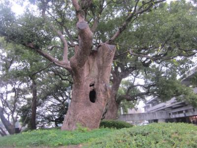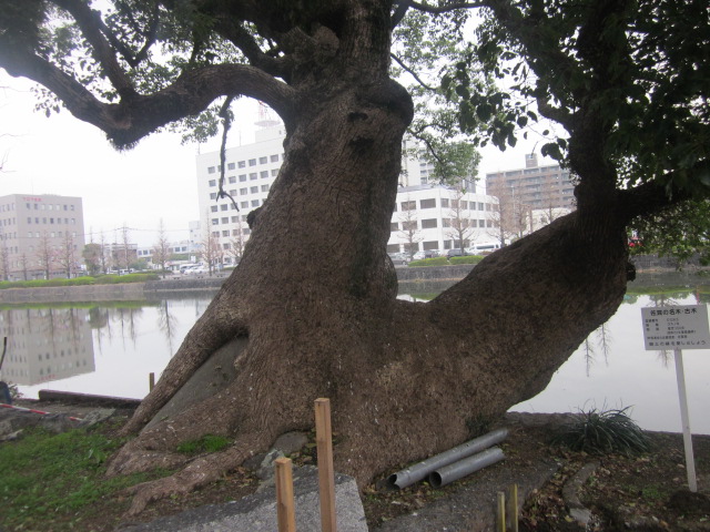佐賀城跡公園の北東側、外堀の対岸に立地しているのがこちらの神社で、すぐ隣の佐嘉神社とは隣接していて、双方は通路で繋がっています。松原神社としての見所は、何といっても本殿の東側にある大楠で、松原の大楠として根元部分には小さな祠も設置されています。
