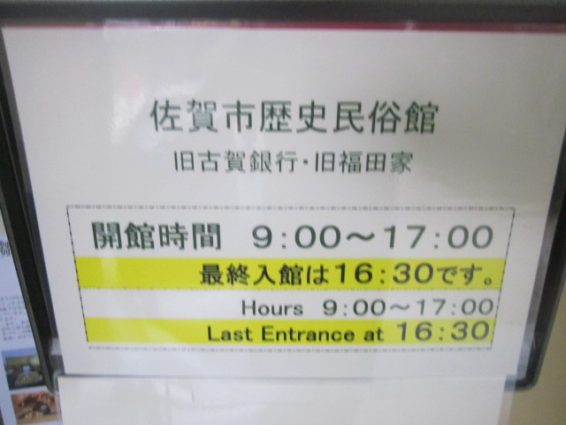 柳町の歴史的町並みの街区内で、一番大きくて立派な外観を呈しているのが、こちらの旧銀行建築で、現在は佐賀市歴史民俗館として運用されています。入場無料で、絢爛豪華な風情のこの建物内部を見られますので、非常にお勧め出来ますが、私の訪問時は、何やら、怪しげなカップルがカメラマンを引き連れて撮影会みたいなのをしていて、落ち着かない雰囲気だったのが残念でした。