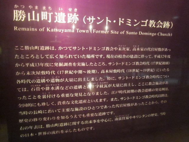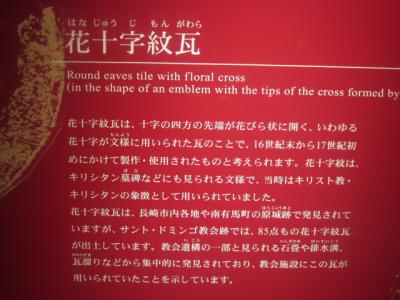 今回の長崎観光で、個人的には一番心に残ったのがこちらの資料館です。まず私のような貧民にとっては、入場無料というのが一番の魅力(-_-;)でしたが、実際の発掘状況を如実に解説している展示や、貴重な花十字紋瓦の展示なども秀逸ですし、元々造られた教会が禁教の時代を通じて破壊された後に建てられた屋敷も、火災などで焼失したり色々な歴史的経緯があったようで、個人的にはジャンルは全然違いますが、劇場跡に歴史が上書きされていった、ローマのクリプタ・バルビのような資料館だなと感じました。