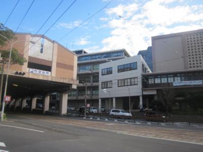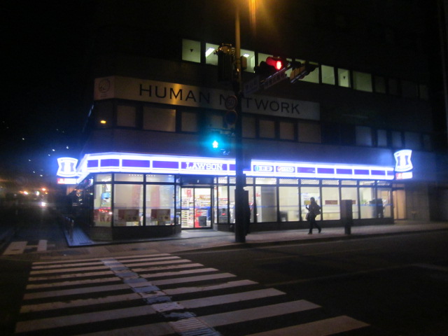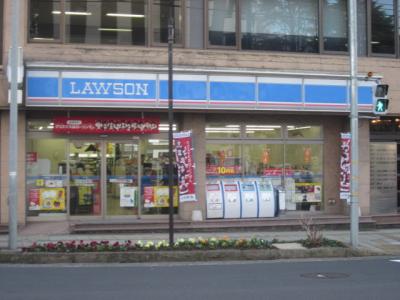 同じローソンの近隣店舗としては、この通りを道なりに北東方向に進んで、桜町公園を経由してサントドミンゴ教会跡資料館のある角を電車通り側に右折した電車通り角にあるローソン(勝山町店)の方が、店舗規模も大きくて、品数も多くてよりお勧めだと思います。
