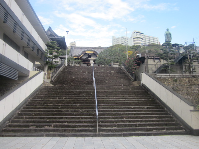 ある意味長崎らしい、長い石段を登ってからしかアクセスできないお寺で、すぐ隣の聖無動寺の石段を登った後にまたこちらの石段に遭遇して、かなりまいってしまいました。これが本当のお参り(?)なのか、と自嘲しながら、ここの石段も最後まで登りましたが、まあ、マニアックな見所が点在している感じのお寺ですので、あまり興味がない方は、無理してまで登る必要はないお寺かなという印象でした。