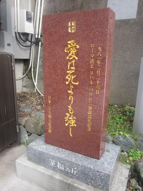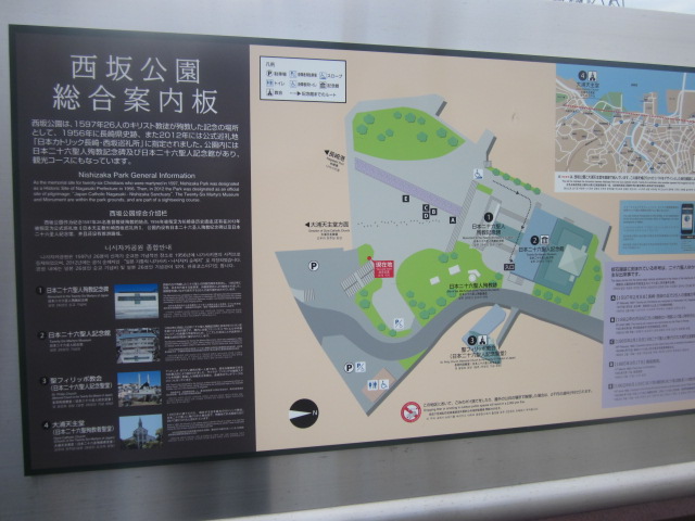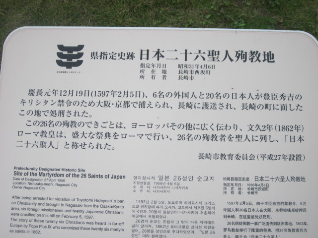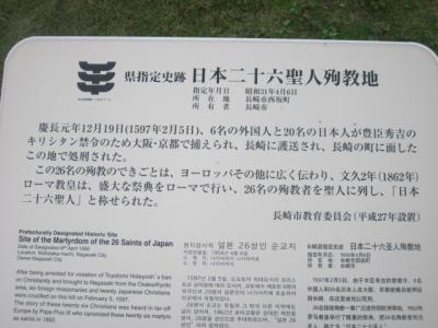 聖人達の歴史的な迫害の経緯はともかくとして、観光客的視点からは、長崎らしい風情で写真が撮れる、しかもここは広い分、色々な角度で撮影できる楽しさがありますので、時間帯や天候、季節などに応じて、様々に変貌する碑の姿を、色々な角度から楽しまれると良いかなと思います。
