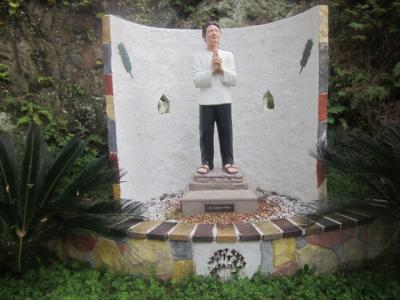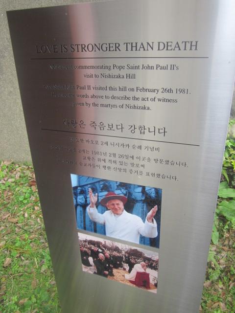 また、記念館入口脇には、1981年に当地にいらした、ローマ法王ヨハネパウロ二世の祝福の言葉を刻んだ碑や、その横には、17世紀に穴吊りの拷問により、フィリピン最初の殉教者となったとされるロレンゾ・ルイス氏が、ヨハネパウロ二世の尽力により、1987年に列聖されたことを記念するオブジェ等も見られて、信者ではなくても敬虔な気持ちになれるスポットだと思います。