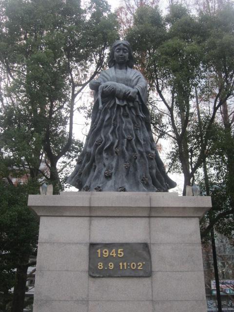 原子爆弾落下中心地碑のすぐ斜め向かいにある、女性を象ったかなり大きな記念碑です。