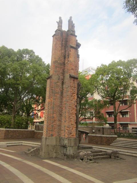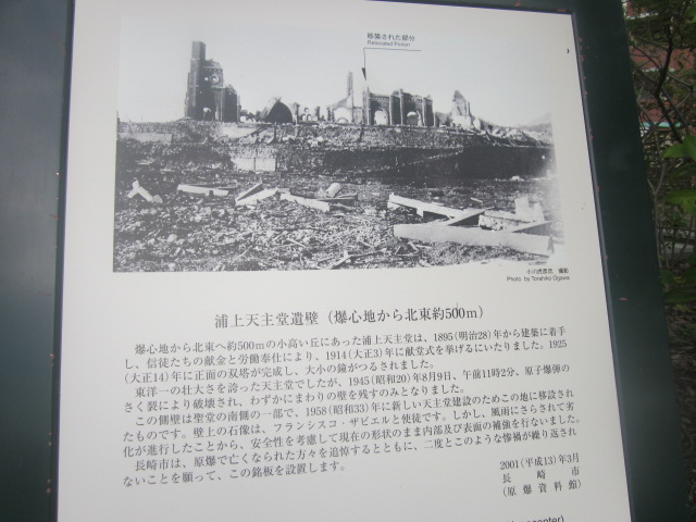 原子爆弾落下中心地碑のすぐ隣に移設されたことからも、その意義の重要性が感じられる訳ですが、やはり普段は強固なイメージの教会建築が、こんな姿になっているのを目の当たりにすると、いたたまれない気持ちになってしまいます。中心地碑と同様、静かに祈りを捧げるべき遺壁だと思います。
