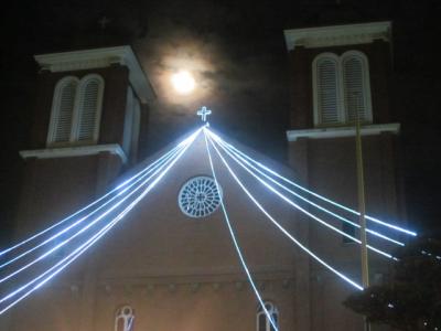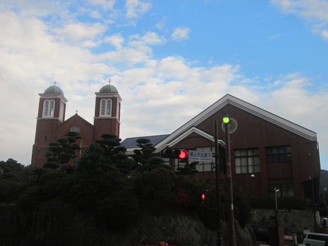 私は今回の長崎旅で、この近くの宿に泊まったために、夜の浦上天主堂の姿を堪能することが出来ました。カテドラルの頂部から、扇状に設置された電飾がとても美しくて、幻想的な気持ちになりました。本来の電飾というのは、やはりこうした粛々とした気持ちで眺められるデザインのが良いな、と、改めて思わせてくれた浦上天主堂の電飾でした。