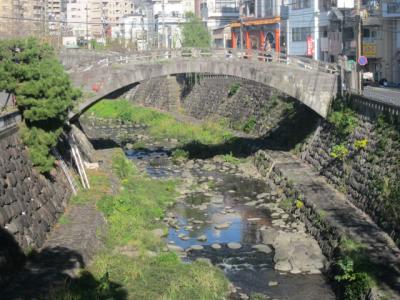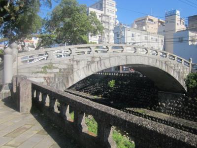 眼鏡橋を代表とする中島川沿いに次々と並ぶ石橋群ですが、残念ながらその多くは再建の建築となっています。ただ、長崎といえばどうしても原爆の被害を連想してしまいますが、ここでは昭和30年代の大水害で流失してしまった橋が多かったそうです。