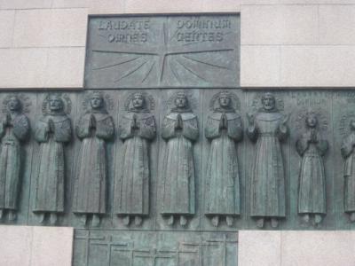 現在は西坂公園として整備されている、長崎市街地としては広々としたオープンスペースに守られるように、威風堂々と建つ二十六聖人の殉教をテーマにした碑です。