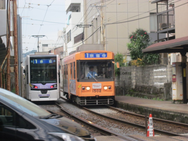 観光地長崎の路面電車は、常に観光客で満ち溢れている印象がありますが、南側と違って、北側に続く路線は、最大の観光地である平和公園を過ぎた以北は、ちょっと地元民向けの風情が漂っていて、”観光客疲れ”をした際には、オアシス的に逃げ込むと良いところです。終着の赤迫電停付近は、正直、あまりめぼしき観光地はありませんが、その分、折り返し列車が出発するまで、ゆっくりとした時間を過ごせる良さがあります。(ただここからの行き先は二系統ありますので、乗り間違えにはご注意下さい。また、最初に正規の車両に乗車していても、配車の都合上、より前方の車両に移動を促す旨のアナウンスが流れることもありますのでご注意下さい。)