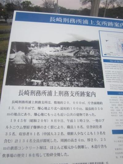 少々不謹慎な言い方かもしれませんが、現在の長崎の平和公園は、勿論、原子爆弾落下中心地付近に縦長に整備された公園ですので、史跡的な価値は少ないかと思います。ただ、そんな中で平和祈念像に至る通路沿いにひっそりと残っているこの刑務所跡は一見の価値があり、移設や新設が多い現在の平和公園内においては、当該地のままで残る貴重な史跡と言えるでしょう。基盤の残り方が鮮明で、案内の解説板もとても分かりやすくて、当時の刑務所のレイアウトがよく解る、非常に秀逸な刑務所跡だと思いました。