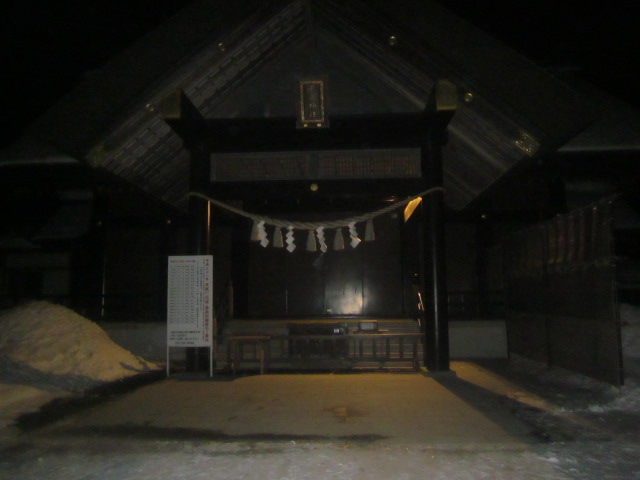 今回は、2月半ばという時期の夜に、こちらの神社を訪問してみました。国道沿いにまず大きな鳥居があるのですが、その周辺は夜間はライトアップされておらず、不安になりましたが、奥に進んだ石段から先は、心細いながらも一応人が通ると反応して転倒するタイプの照明が設置されているので、夜間でも参拝は可能です。また驚いたことに、この時期の北海道の神社としては珍しく、ちゃんと夜間でも手水舎に水が供給されていました。24時間対応かどうかは不明ですが、少なくとも私が訪問した21時頃はちゃんと手を清めて参拝できる、という意味で、やはり重要視されている神社なのだなあと感じました。