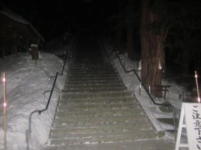 石段には、過剰なほどに砂が撒かれていますので、滑りにくいとは思いますが、特に雪道に慣れない方は、直線的に歩くと危険を感じる箇所もありましたので、特に下りは直角に下らずに、足を横にしながら一歩ずつ確保して下るとより安全かなと思います。- 旅行時期