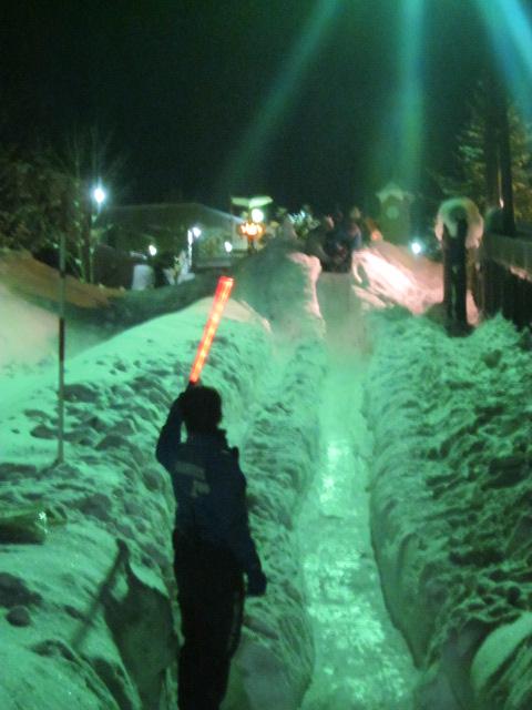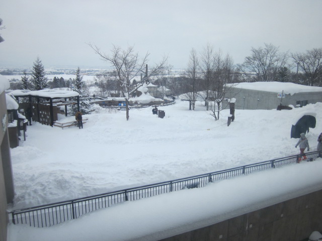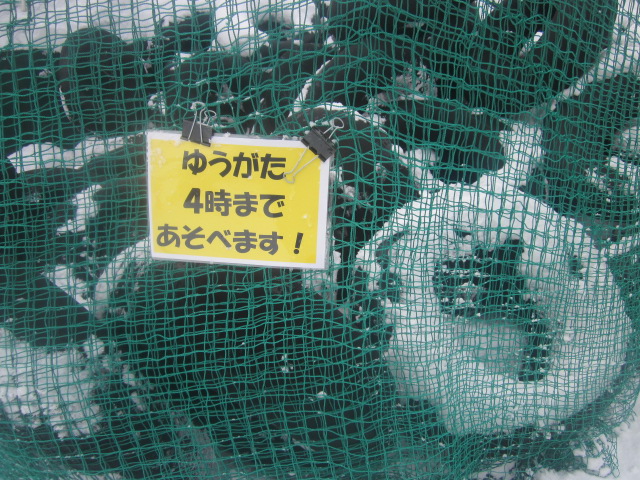正門に一番近い側にあって、この辺りは一番の高台にある東門に向かっての旭山動物園名物の上り坂が始まる箇所でもあるので、傾斜があります。その関係で、旭川冬まつり会期中の2月上旬に、旭山動物園で夜間開放されるイベント、雪あかりの動物園の際には、ここに滑り台が製作されて、子供たちの歓声がこだましていました。