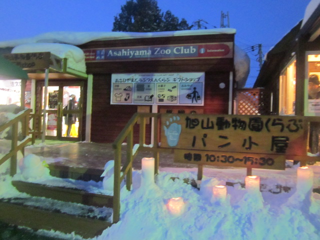 因みに冬季の雪あかりの動物園開催中は、近くの売店と同様、ここも夜は延長営業をしていました。- 旅行時期