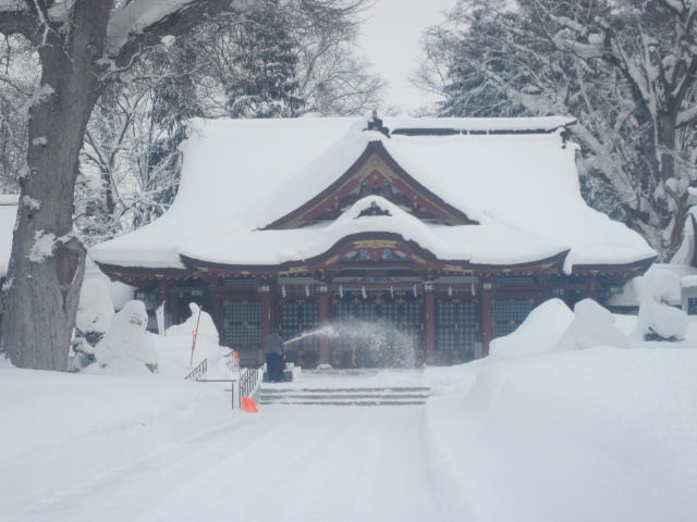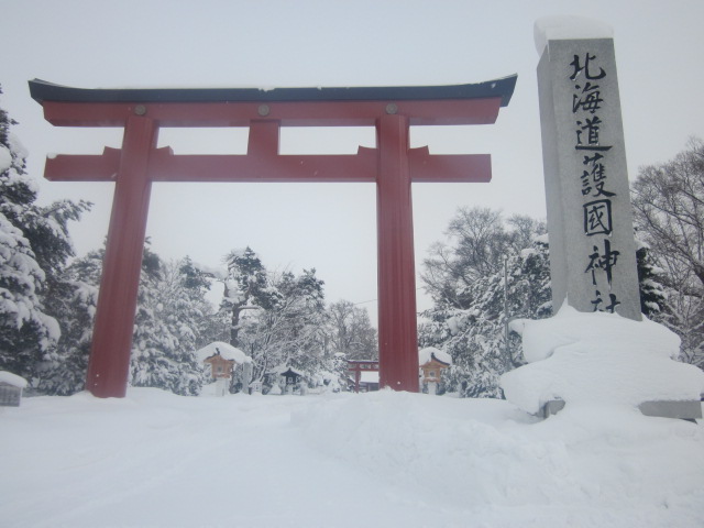 今回は旭川冬まつり見物の折に、冬の護国神社の様子が見たくて立ち寄ってみました。除雪に関しては、国道40号線側からの参道沿いに、大体2m位の幅で本殿まで施されているという感じで、道北バスや旭川電気軌道バスの護国神社前からのアクセスでの参拝に関しては、問題なく本殿前まで行くことが出来ると思います。