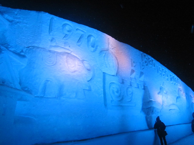 今回は平成最後、2019年2月の旭川冬まつりの会期の初日に見物に出かけました。この年は奇しくも第60回の節目の祭典でもあって、大雪像は「60Yearsミュージアム~歴史を刻んだ大雪像参上~」と題したメモリアルな仕様になっていて、とても見応えがありました。
