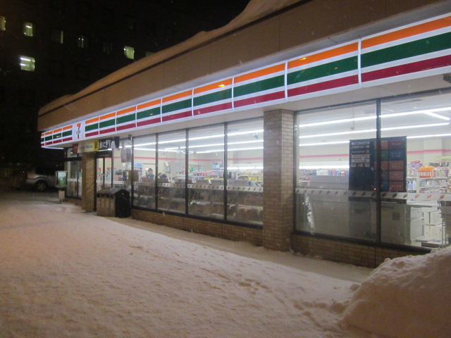 今回は、旭川雪まつり見物の帰る道すがら、寒かったので肉まんでも買おうと立ち寄ったのがこちらのセブンイレブンでした。4トラさんの登録スポットの中では、旭川市内での唯一のセブンイレブンだったので、期待して足を運びましたが、特にイートインとかもなく、ごく普通の店舗でした。ただ、7丁目の通り沿いに随分横長な形状な店舗だなという印象はありました。