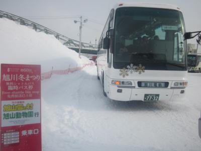 最近は、先日の旭川空港国際線ターミナルオープン時の無料バスなどもそうでしたが、旭川電気軌道さんのバスをタダ乗りばかりさせて頂いて、申し訳なくも感じるのですが、今回は冬まつり会期中に運行される、冬まつり会場(旭橋河畔)~旭山動物園の無料シャトルバスを往復利用してみました。