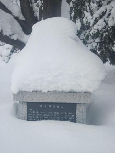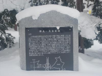 参道沿いには北海道と樺太を象った池が配置されていて、雪のない時期はその池に浮かぶ”地図”を眺めるのが楽しかったりするのですが、流石に雪が積もっていると、何のこっちゃ…な風情でした。あと、かつての日露国境を示す標石のレプリカもこの神社の見所の一つですが、厳冬期は雪を被っていて、完全に見えない状態になっていました。- 旅行時期