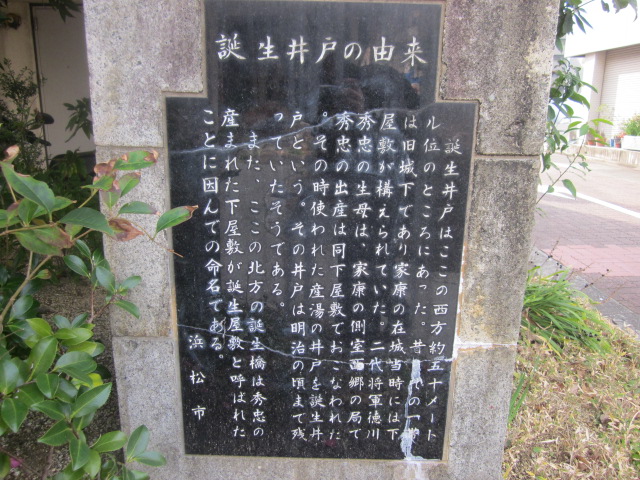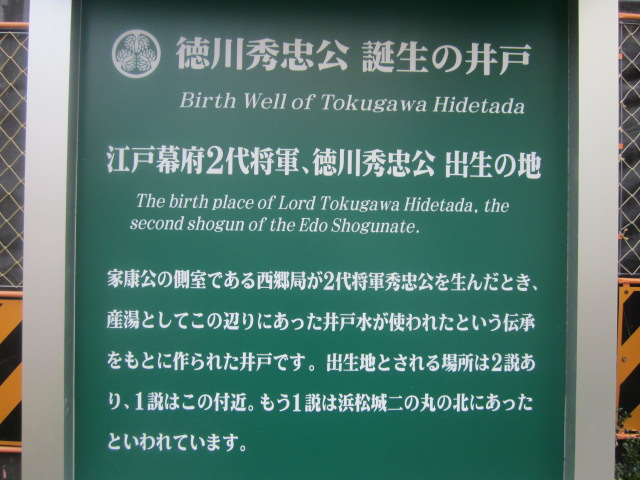 このスポット自体は、徳川第二代将軍の秀忠の誕生井戸として解説されていますが、実はここから、八幡宮や東照宮、浜松城などの初代将軍家康に関連した各スポットを巡るウォーキングルートが設定されていて、「家康の散歩道」として人気コースになっています。この井戸に関しては、復元なので、歴史的な価値は低いかと思いますが、話のタネに是非この散歩道を部分的だけでも良いので、歩いてみると、より家康に関する造詣が深まって、思い出に残る旅になるでしょう。