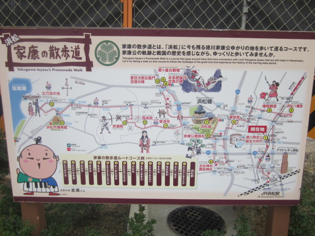 まあ、所謂観光スポットとしての歴史的な街道の要素は一切見られませんが、道路沿いには、交通安全を標榜するユニークな家康くんの看板が随所に設置されていますので、話のタネとして、浜松城への行き帰りに歩いてみるのも楽しいかなと思います。