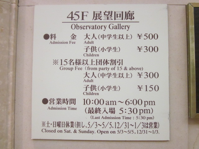しかも、開放日も何と500円を徴収するとのことで、ちょっと閉鎖的な雰囲気を感じてしまいましたが、ここまで高層ビルになってしまうと、やはりビジネス的な要素も加味されてしまうのかな、とちょっと残念な気持ちになりました。