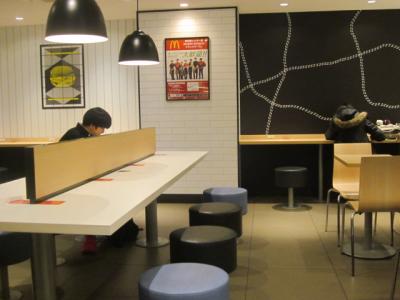 浜松駅に直結していて、便利な立地のマクドナルド店舗です。私は朝8時頃に到着して、観光案内所がオープンする9時までの時間調整の際に利用しましたが、平日だったこともあってか、入店した8時15分頃はビジネス客を中心に朝マックするお客さんで混雑していましたが、8時40分頃からは店内はかなり空いてきて、案外快適に過ごすことが出来ました。