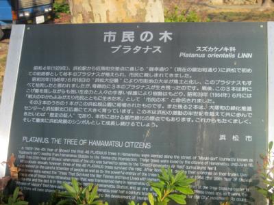 浜松は太平洋戦争の際、数度の大空襲で壊滅的な被害を受けた町としても知られていますが、その戦火の中で生き延びたプラタナスの木が、ここに移植されて、現在も尚、元気な姿を見せてくれています。こうした木の生命力には頭が下がる思いですね。是非、実際に間近でその力強い生命力を感じてみて下さい。