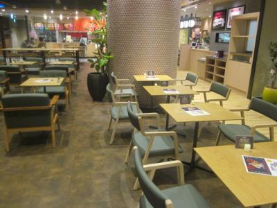 ただここは、商業ビル内の店舗で、駅に向かう通路沿いに客席が並ぶレイアウトとなっていますので、客席によっては、通路に直結していて、行き交う人々の視線が気になることがあるかもしれません。また、駅から店舗のカウンター側にアクセスした際は、結構小さな店舗かなと思いましたが、客席は横長に結構奥まで続いていて、奥の壁側のゾーンには、電源席も並んでいるエリアがありますので、充電目的での来店もしやすい店舗かなという印象を受けました。