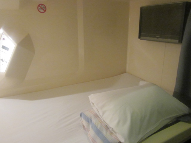 お部屋に関しては、色々なタイプがあるみたいでしたが、私は価格最優先で、ちょっとしたカプセルホテル的なお部屋で予約しました。但し、カプセルといっても、アコーディオンドアで仕切られた個室タイプなので、よくカプセルホテルなどに設置されているデラックスルームのような風情で、それでいて朝食も付いていて、大浴場もあって3450円で宿泊できましたので、コスパ的にはなかなか良いホテルだと思いました。