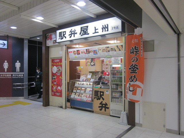 北関東の交通の要衝として知られる高崎駅の改札内にある店舗です。高崎は関東の旅においては、個人的には一番駅弁を買いたくなってしまう駅ですが、ここの商品のラインナップは豊富で、どれも美味しそうで迷ってしまいました。まあ、結局は定番のだるま弁当を買ってしまいましたが…。