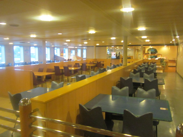 私の乗船時は夕食バイキングをオーダーすると、翌朝の朝食バイキングが無料というキャンペーンをやっていて、これを利用したのですが、正直、夕食バイキングで食べ過ぎると、翌朝の朝食バイキングの設定時間がかなり早いので、お腹が空かないので、実はいくら朝食無料でもあまりお得感がありません。私のようにバイキングでは元を取らないと、と食べ過ぎる傾向がある方は、あまり朝食バイキング無料に惹かれて、高い夕食バイキング代を払うよりは、それは我慢して、種数は少ないですが、卵やパン、サラダが食べ放題の朝食バイキング(300円)をオーダーして、こちらで満腹に食べる戦略の方が、コスパは高いのかな、と思いました。