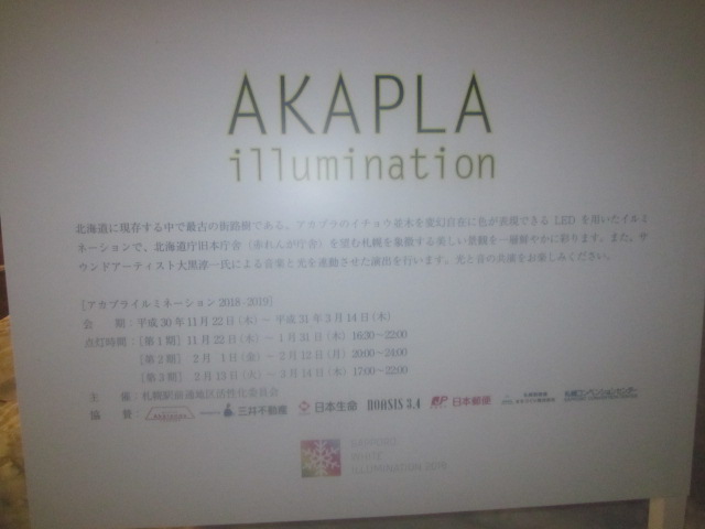 2018~19年の冬は、何だか全国津々浦々で沢山のイルミネーションを見ているのですが、数年前にオープンしたばかりの札幌の新名所アカプラでも、こんなイルミネーションをやっているのか!と驚かされました。