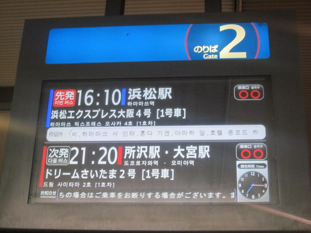 私は本来、ここから名古屋までJRのハイウェイバスを利用しようと思っていたのですが、折悪く台風が接近中だったため、同日の運行予定便が殆ど運休になってしまっていました。