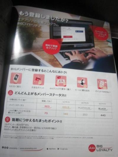 更に、今回の搭乗で機内誌を見ていて気付いたのは、DJのみならずエアアジアグループのFFPとしてのBIG LOYALTYの宣伝があって、最近では、積算したBIGポイントが航空券その他の支払いにも少額から利用できるようになった、とのこと。